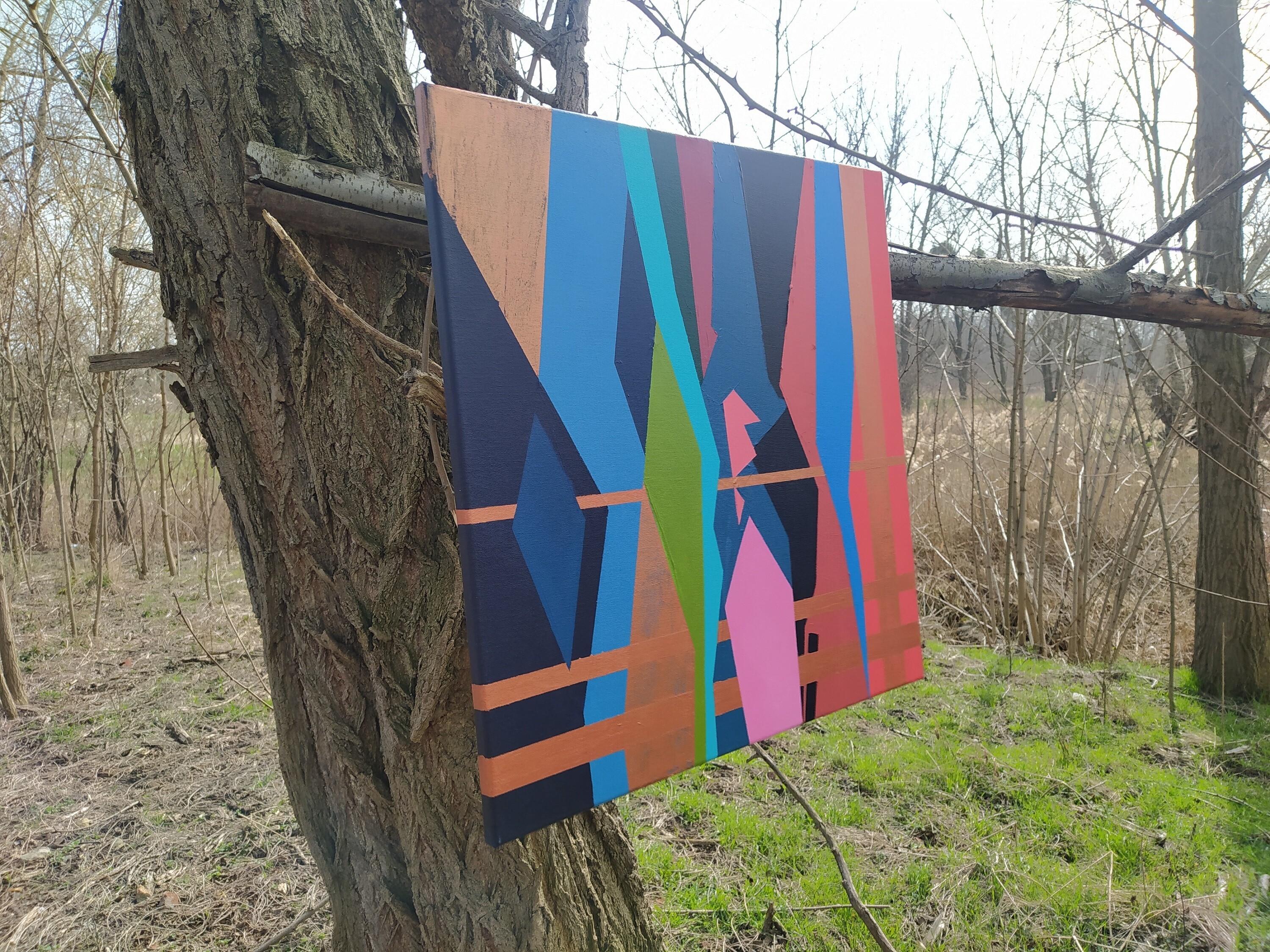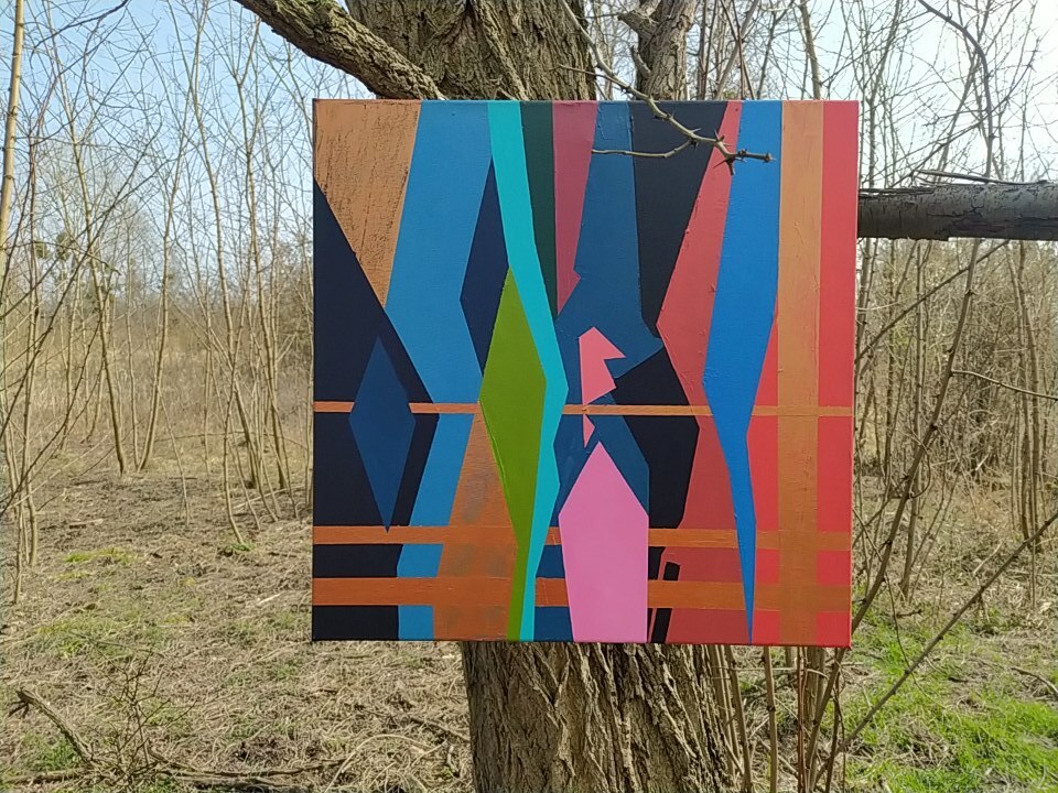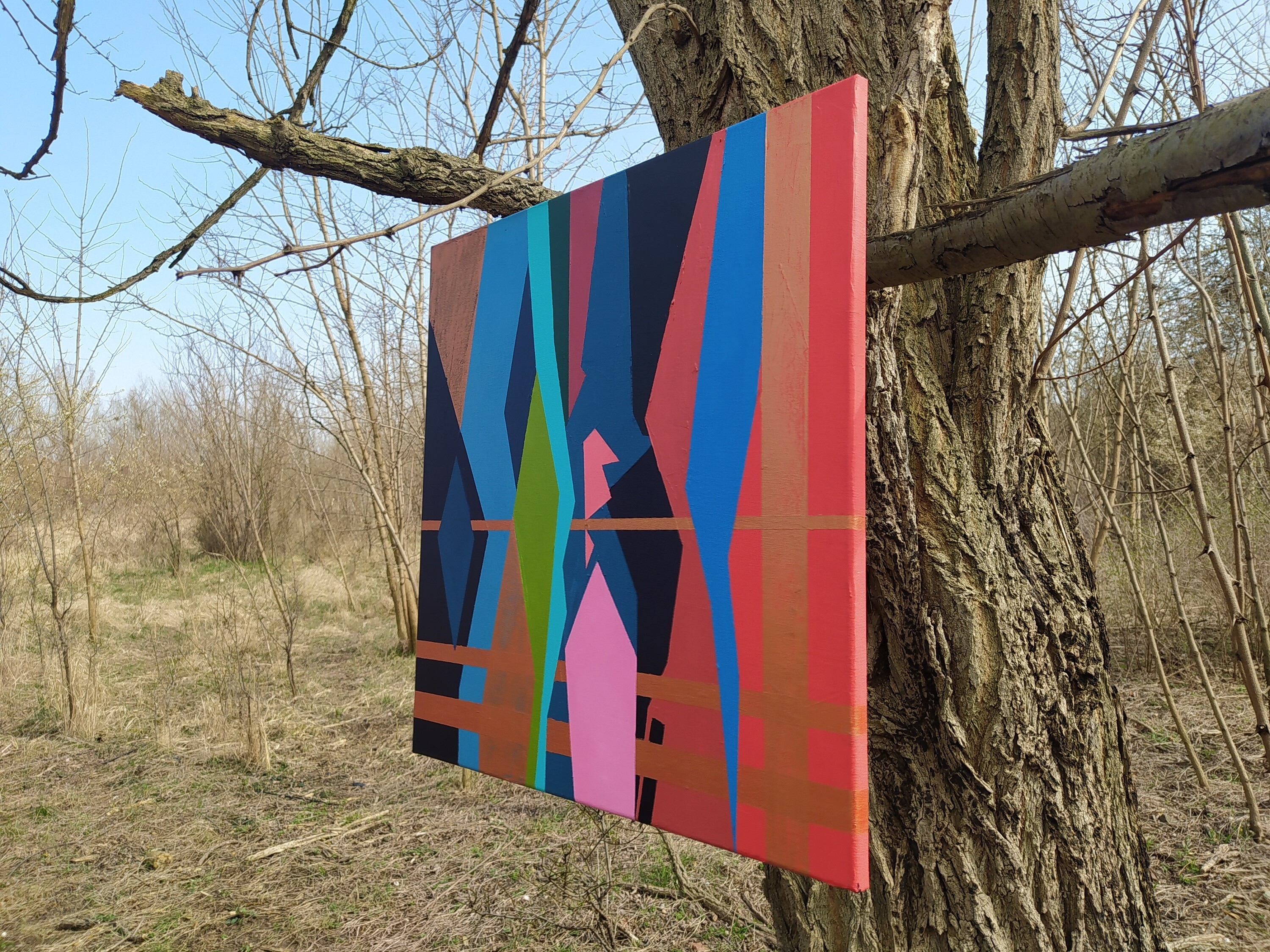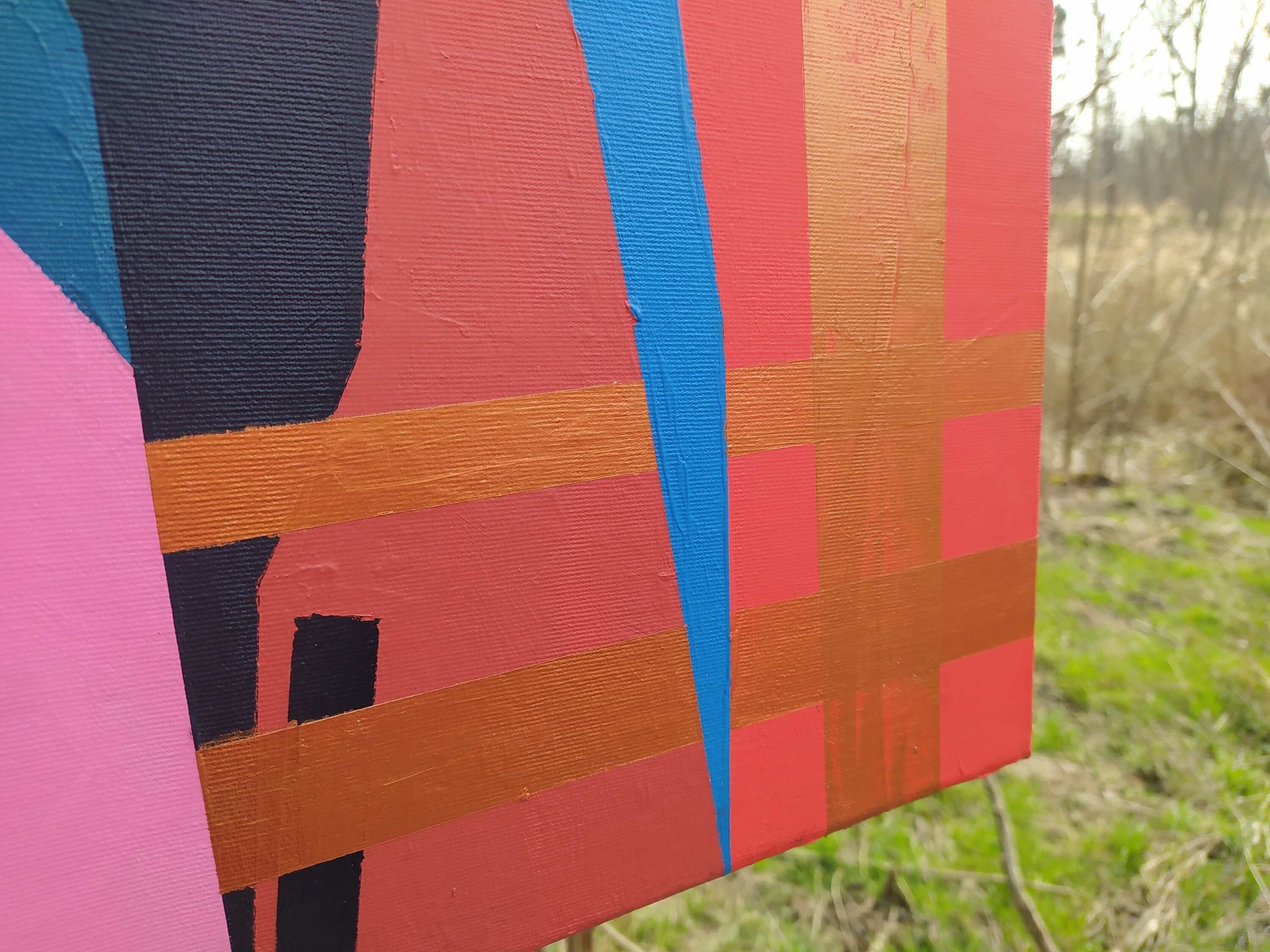 'Kapliczka' powstała na przełomie 2020 i 2021 roku. Ustawione w przemyślanej kompozycji przedmioty miały stać się martwą naturą, ale z każdą warstwą farby stawały się krajobrazem, górami o zachodzie słońca, rytmem muzyki, światłami miasta - aby na sam koniec przywieźć na myśl małą kapliczkę w głębi lasu. Rozwijała się razem ze mną, gdy zmieniałam koncepcję, wydobywałam nowe skojarzenia, a chwilami to Kapliczka prowadziła mnie ku nowym inspiracjom.